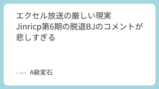 jinricp エクセル放送の厳しい現実 Jinricp第6期の脱退BJのコメントが悲しすぎる